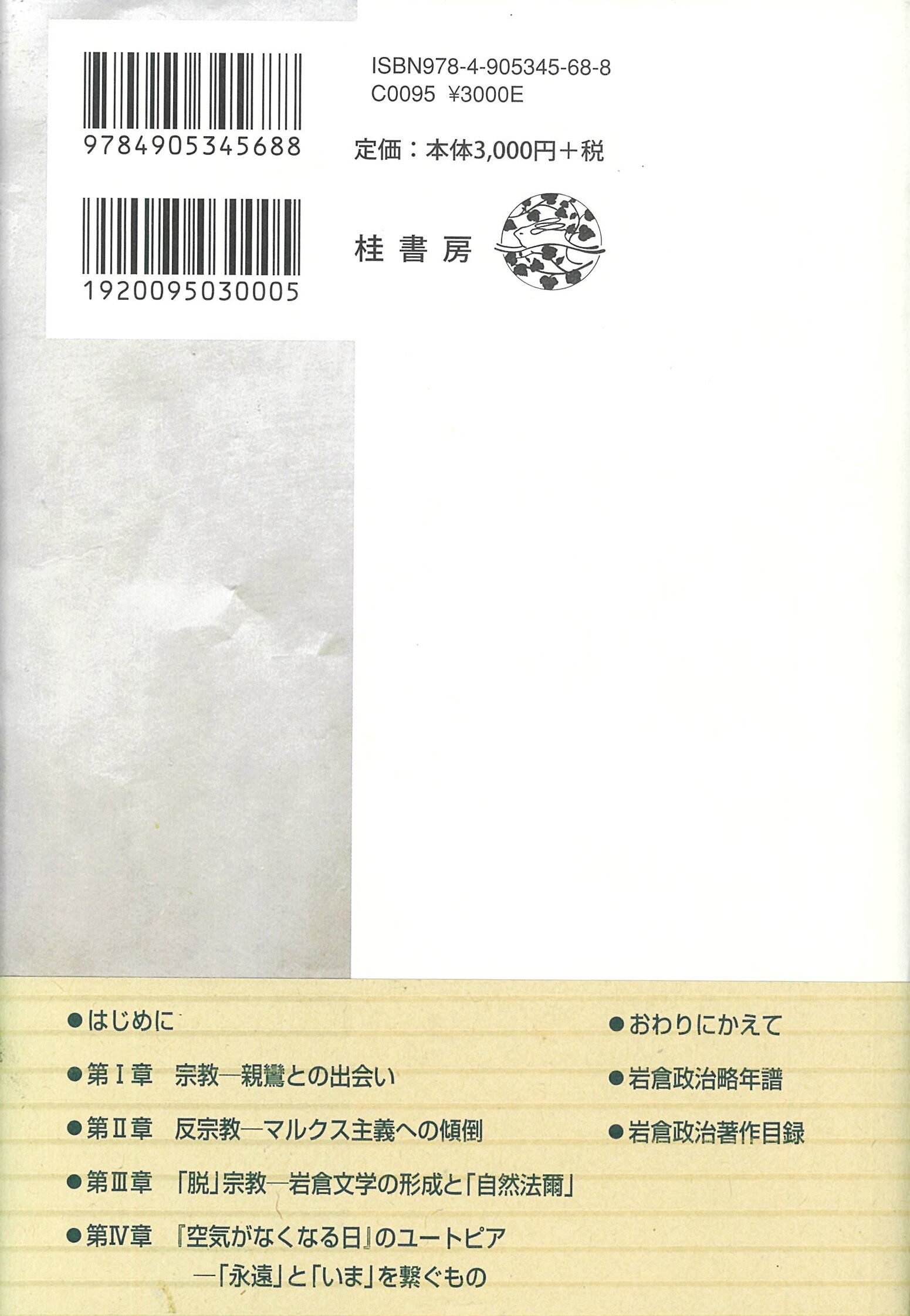 岩倉政治は禅学者の鈴木大拙とマルクス主義哲学者の戸坂潤との出会いにより、唯物論の学習に邁進するが、その本領は「宗教か反宗教か」「親鸞かマルクス か」にとどまらず、思想の冒険へと踏み出していくところにあった。岩倉の「脱宗教」は、親鸞の「自然法爾」と結びつく。岩倉の生涯をたどり、その思想と文学を論じた出色の力作。